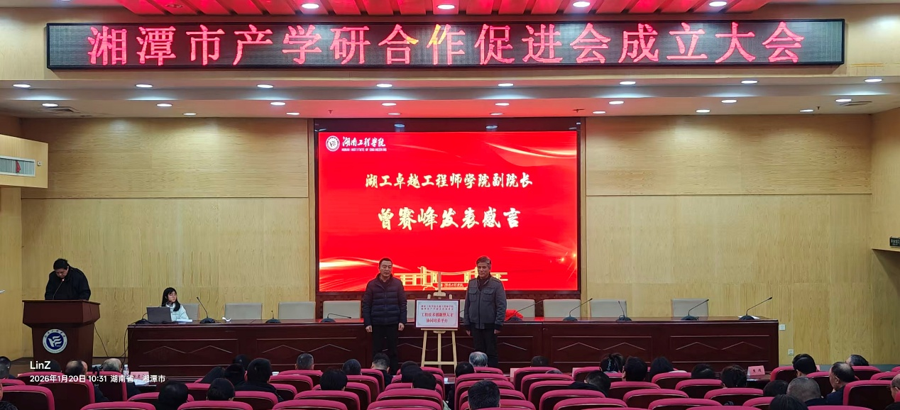 1月20日,湘潭市产学研合作促进会成立大会在tyc41183太阳成集团举行。会上,tyc41183太阳成集团tyc41183太阳成集团与促进会签署协议,共建“工程技术创新型人才培养平台”,并举行揭牌仪式。