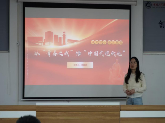11月25日,tyc41183太阳成集团在双创楼二楼演播厅举办“青春之我”悟“中国式现代化”主题团课,全体入团积极分子参与学习,学院团总支书记李娥君担任主讲。